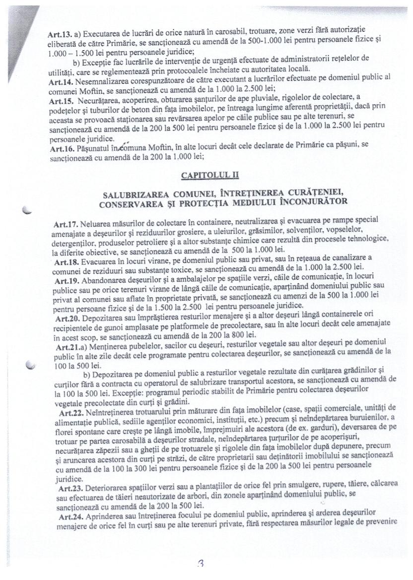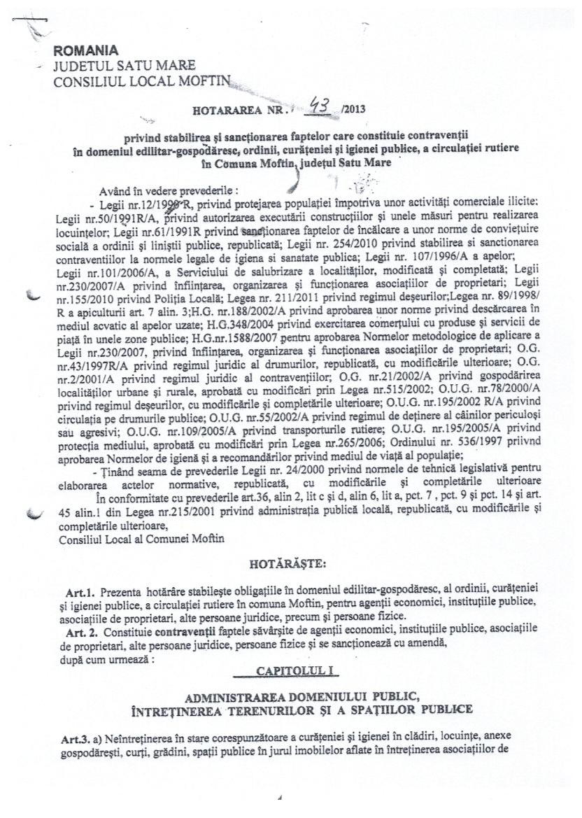 Hot. 43 - stabilirea , sanctionarea pentru contraventii in domeniul edilitar gospodaresc